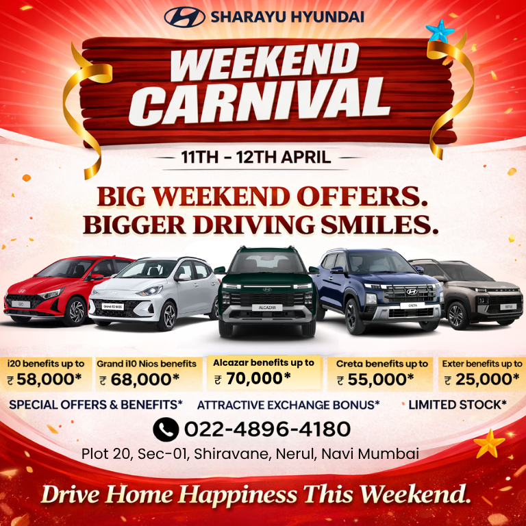 *Get ready for Big Weekend Offers & Bigger Driving Smiles this 11thβ12th April at Sharayu Hyundai.*